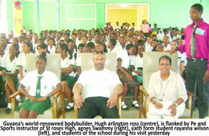 The New York-based Ross, who has an off-season weight of 212 pounds and competes at a weight of 193, gave the beaming students a brief insight into his early life, which was primarily spent in rural Guyana.