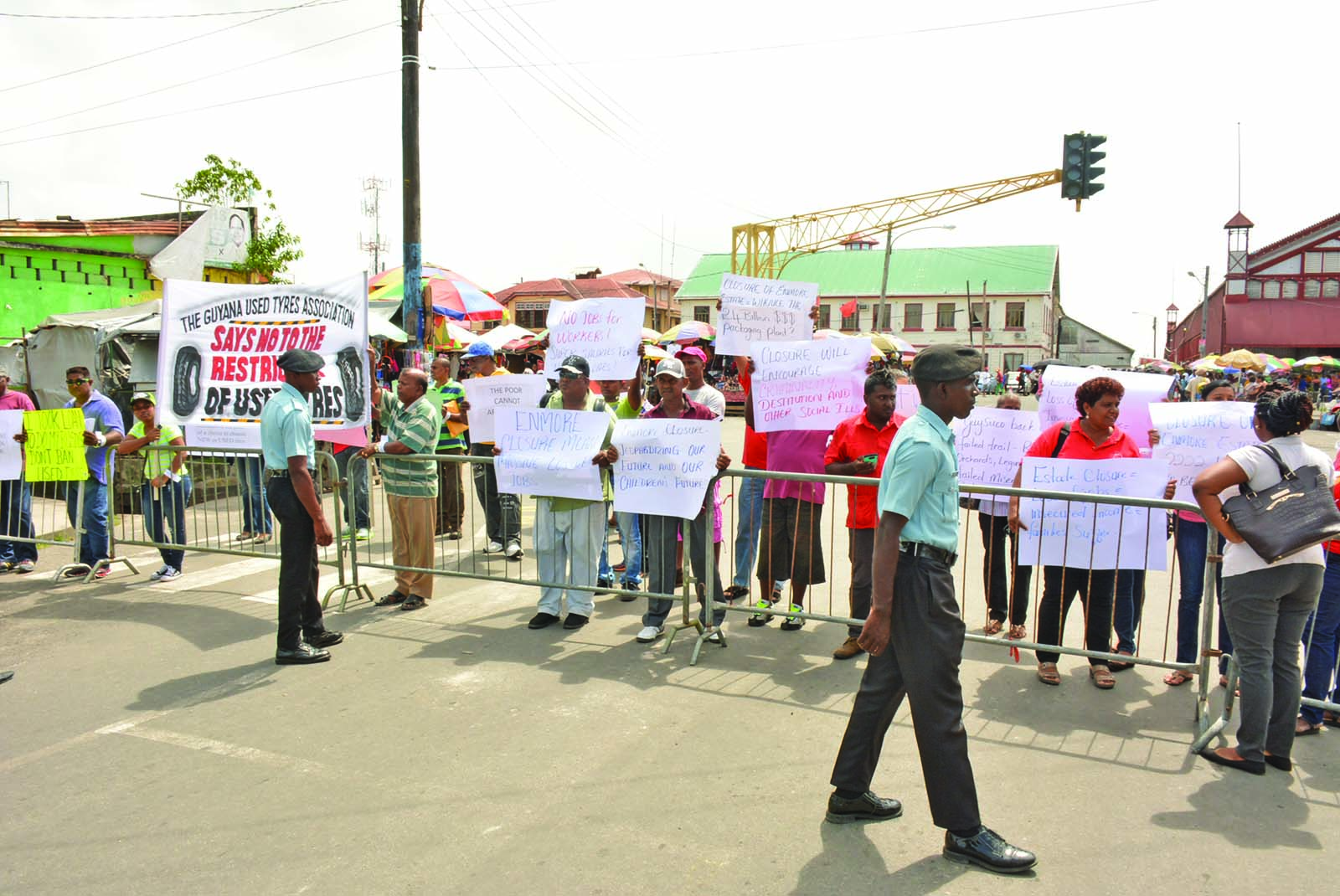 Protestors representing three separate causes are now questioning the true meaning of democracy – as are some Parliamentarians – after the Police imposed restrictions on their picketing exercise on Monday. Stakeholders against the closure of the Guyana Sugar Corporation (GuySuCo) estates, those against the imposition of Value Added Tax (VAT) on private education, and those against the ban on used tyres, turned up to stage a peaceful picketing exercise directly outside of Parliament Building – in clear view of the sitting Members of Parliament – but were prohibited from so…