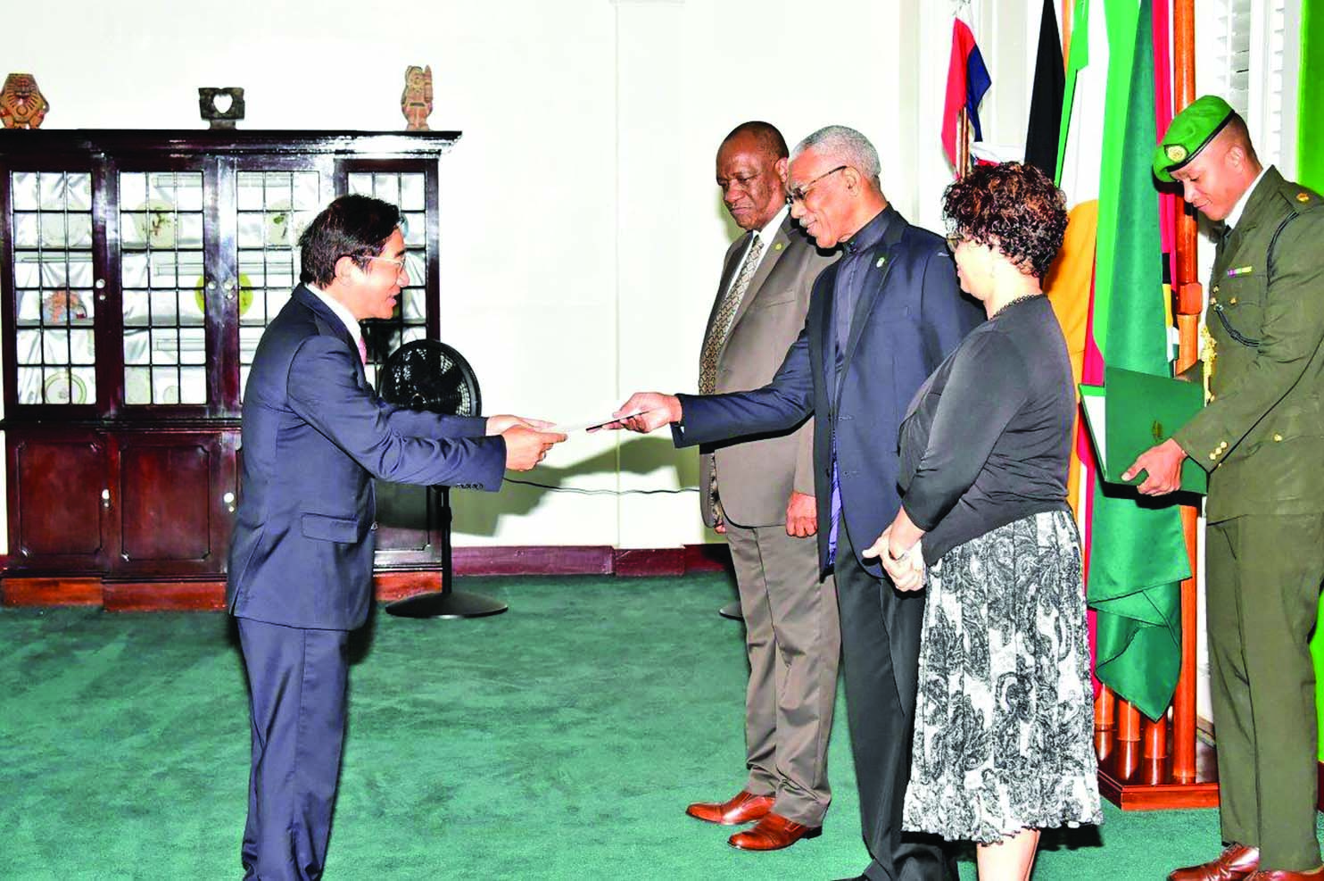As Guyana seeks to strengthen ties with its international neighbours, President David Granger has accredited two new diplomats of the Socialist Republic of Vietnam and the Republic of Mauritius. The Guyanese leader accepted the Letters of Credence from the Vietnamese Ambassador and Mauritian High Commissioner at State House on Main Street, Georgetown. The newly accredited Vietnamese Ambassador, Do Ba Khao, highlighted his country’s own outstanding Gross Domestic Product (GDP) performance over the past three decades, while recognising that Guyana continues to maintain political and economic stability despite external challenges not…