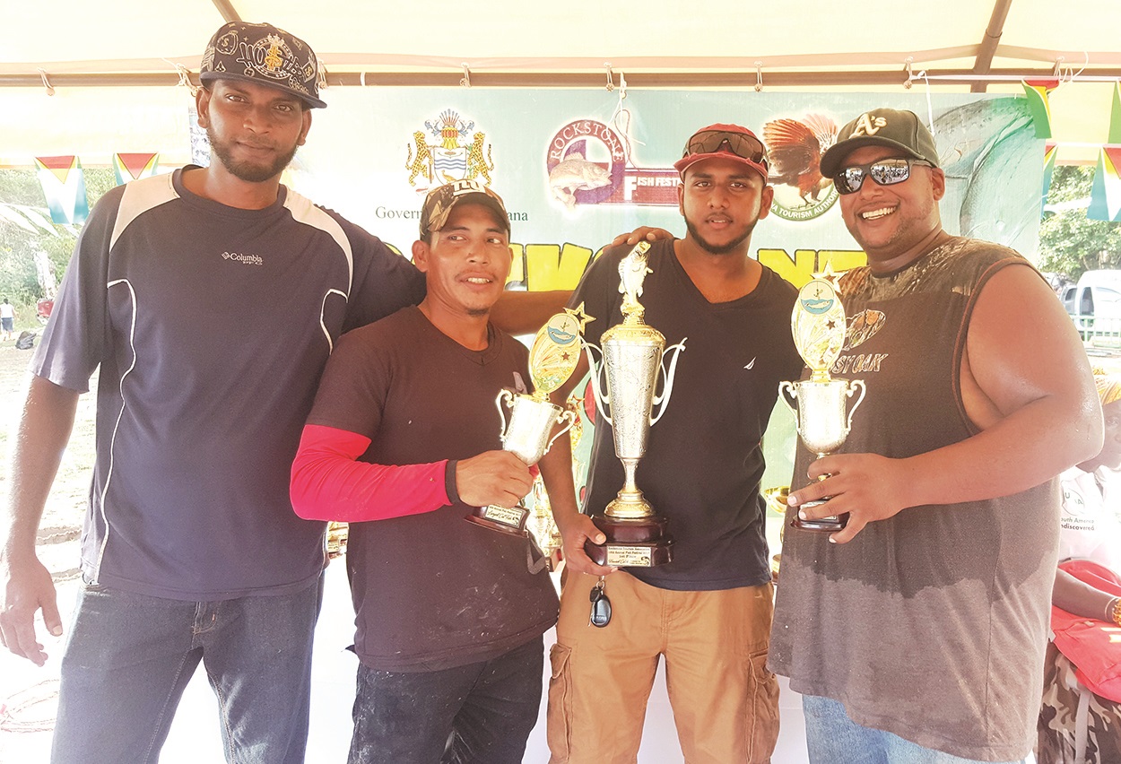 By Bhisham Mohamed Ravin Persaud of Amelia’s Ward, Linden was adjudged the winner of the 12th Annual Rockstone Fish Catching Competition, held last Sunday. Accompanied by two relatives, he and his boat captain, Ryan, ventured out into the Essequibo River at about 5:00hrs on Sunday in their bid to cop the prize for the largest catch. It definitely paid off, and he was awarded the cash prizes for the biggest catch of the day — also the biggest catfish caught — weighing approximately 65 pounds and measuring approximately four feet…