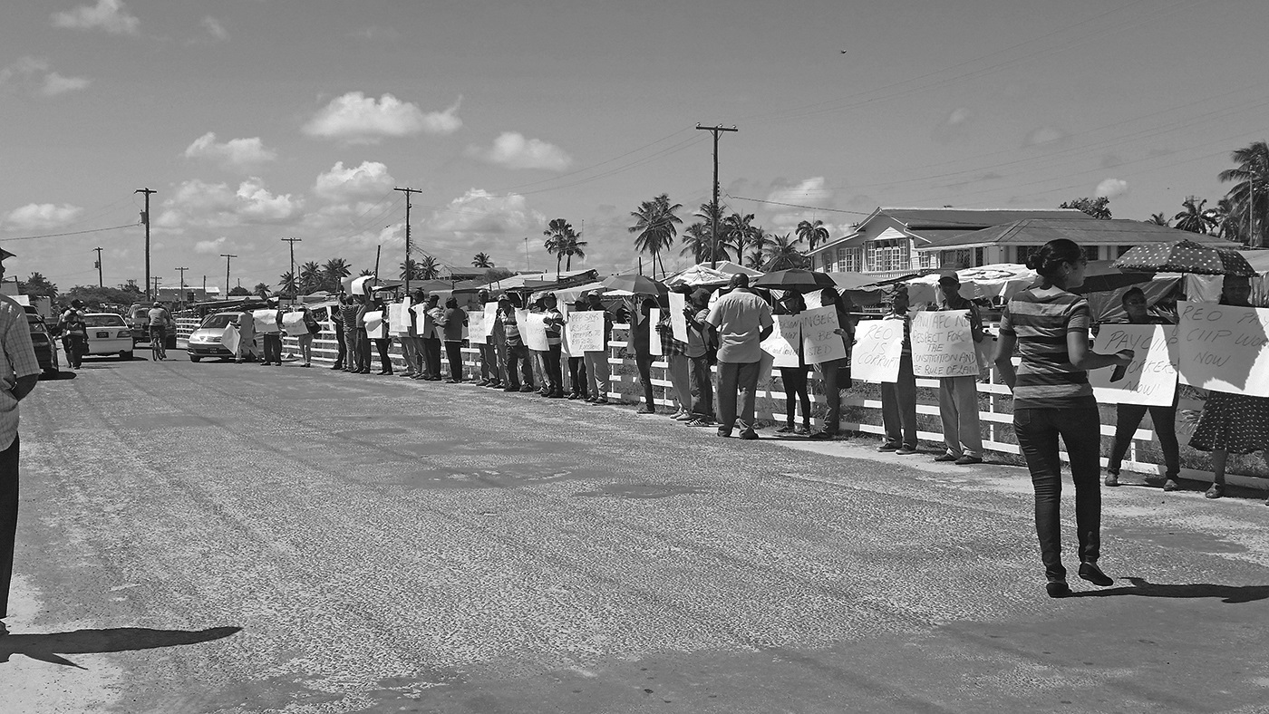 Residents from various villages along the Essequibo Coast as well as CCIP workers, who were owed two months by the Region Two Administration on Monday staged a peaceful protect in front of the Regional Democratic Council (RDC) office at Anna Regina. Protesters were armed with placards featuring various messages such as “CCIP workers not Paid”; “Move REO now”; “REO must show respect to the Municipality”; “Rice farmers are suffering” and “REO pay CCIP workers now”. The protesters stood in front of the RDC for nearly two hours with their placards.…