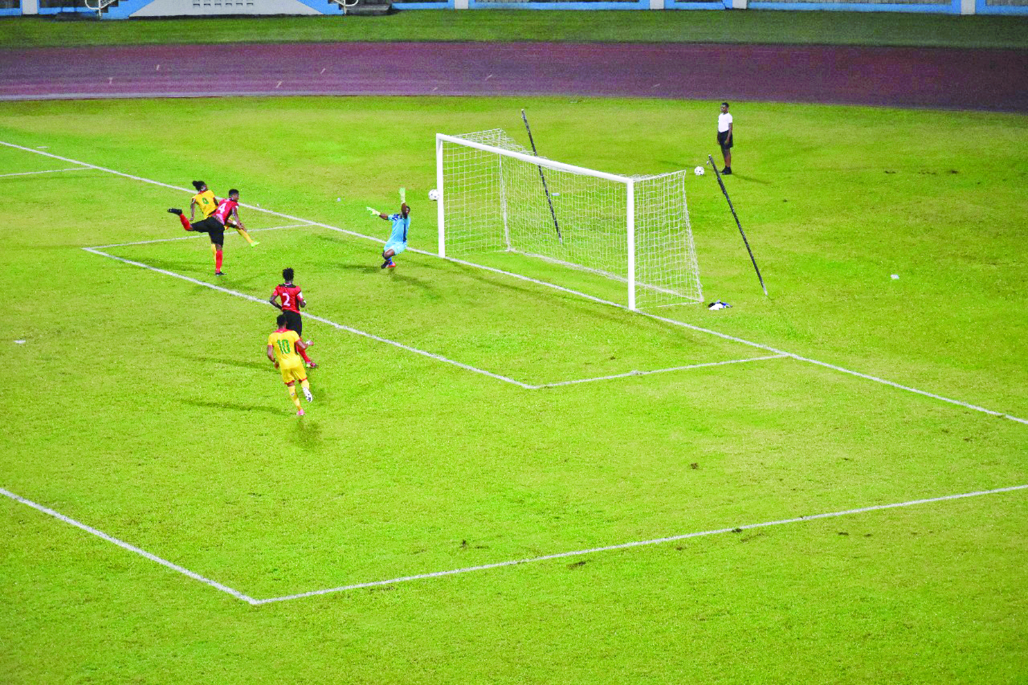 By John Ramsingh A 19th minute header from Sheldon Holder and tight defending ensured that Guyana came out with a spirited 1-1 draw against Caribbean Powerhouse Trinidad and Tobago in their International Friendly match at the Ato Boldon stadium in Balmain Couva, Trinidad on Tuesday night. The hosts controlled much of the game including the early exchanges and had three shots on goal within the first 13 minutes which was played at a high intensity in front of about 1,500 screaming Soca Warriors supporters. However, it was the visiting Golden…