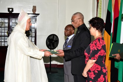 As Guyana and the Kingdom of Morocco celebrate five years of cordial diplomatic relations, President David Granger, yesterday, accredited Mr. Nabil Adghoghi as the new Moroccan Ambassador to Guyana. The two countries established formal diplomatic ties on December 14, 2012. President Granger said that Morocco’s efforts to balance economic development and the protection of the environment can provide valuable lessons for Guyana. Moreover, he lauded Morocco’s global leadership on issues such as climate change and the protection of the environment manifested in its hosting of the Conference on Climate Change…
