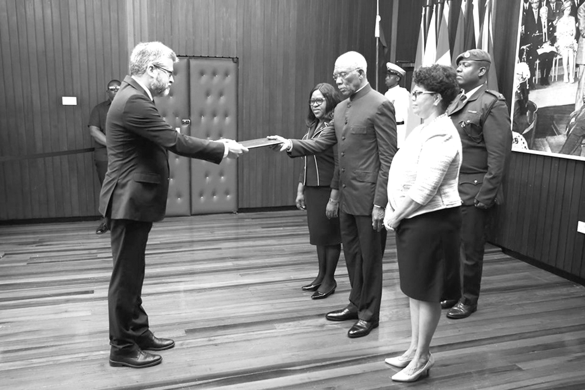 President David Granger on Wednesday received letters of credence from the new Ambassadors of the European Union (EU) and Mexico to Guyana. During the ceremony, the Head of State committed to building upon the long-standing relationship with both countries. The accreditation ceremony was held at the Ministry of the Presidency. The Department of Public Information reported that the President said that Guyana has benefitted substantially from the EU’s development cooperation programme, especially in the agricultural, education, housing, and public health sectors, as well as in its efforts to combat climate…