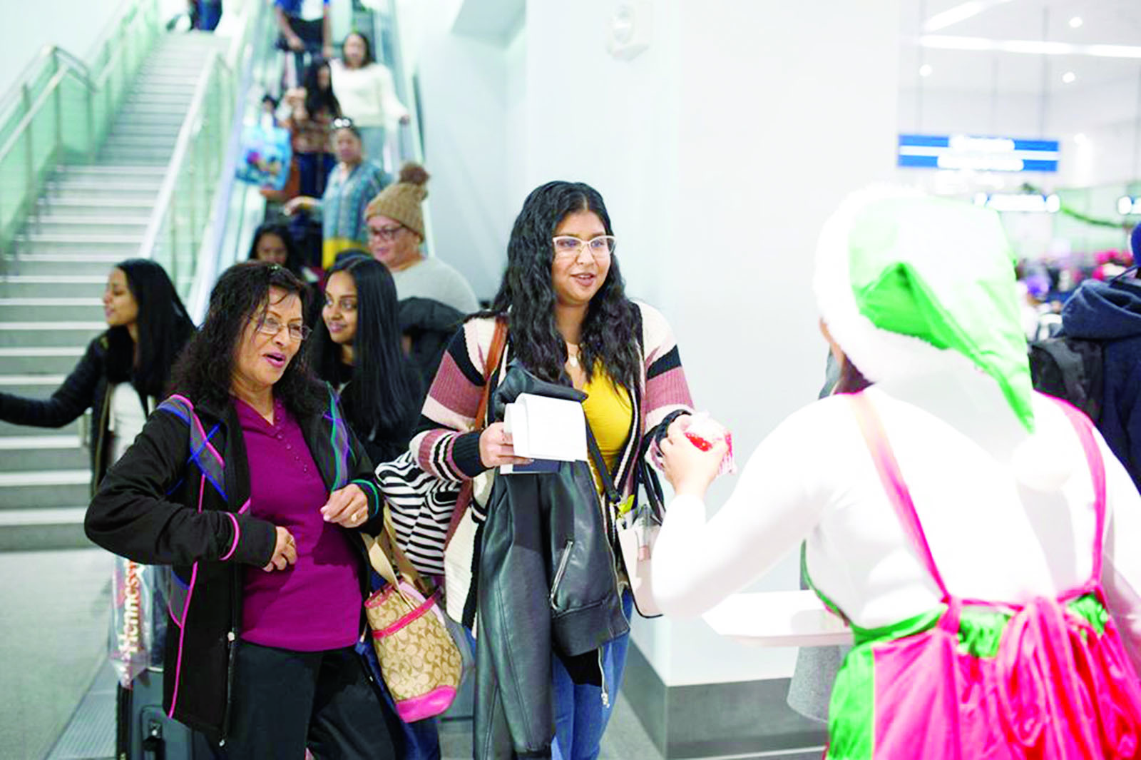 Passengers being treated to Black Cake on arrival at the Cheddi Jagan International Airport during the holidays (DPI photo)