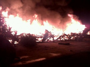 Another occupant of the building, Deonarine Indar said that his minibus and about 150 meat birds were damaged in the fire. At the scene, he was seen trying in vain to put out the fire. He said that his minibus came out of the spray painting shop less than a week ago, and it was not easy to see it go up in flames. He also estimated his loses to be in the millions. He explained that his wife had recently invested a sum of money in rearing the meat birds, but noted “it all gone”. He also said that he lost two refrigerators along with computers and other appliances. He pointed out that it will be hard to start over life afresh anytime soon.