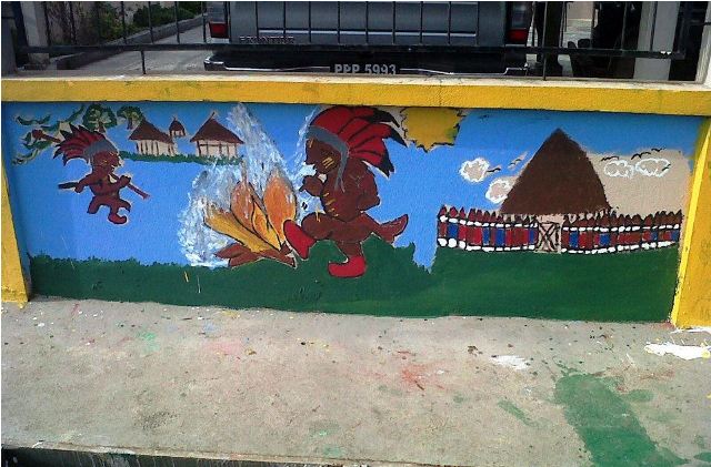 The Ministry of Amerindian Affairs, at the corner of Quamina and Thomas streets in Georgetown, was artistically highlighted September 22 by children who came out in their numbers from various parts of the country, to paint their interpretation of Amerindian Heritage Month’s theme, ‘Embracing our Identity, Celebrating our Culture’ on its fence.