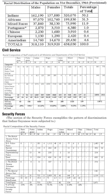 “Guianese of African extraction were not afraid to tell us that many Indians in British Guiana looked forward to the day when British Guiana would be a part not of the British Commonwealth but of an East Indian Empire. The result has been a tendency for racial tension to increase, and we have reluctantly reached the conclusion that the amity ‘with which’, as the Waddington Report said, ‘people of all races live, side by side in the villages’ existed more in the past; today the relationships are strained; they present an outward appearance which masks feelings of suspicion and distrust.