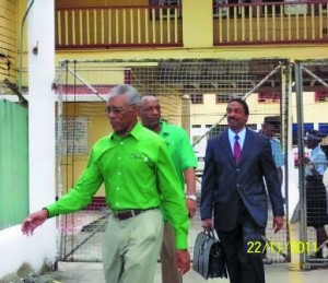 David Granger leaving the Brickdam Police Station on Tuesday after speaking to the police in relation to the protesters who were detained during a street march