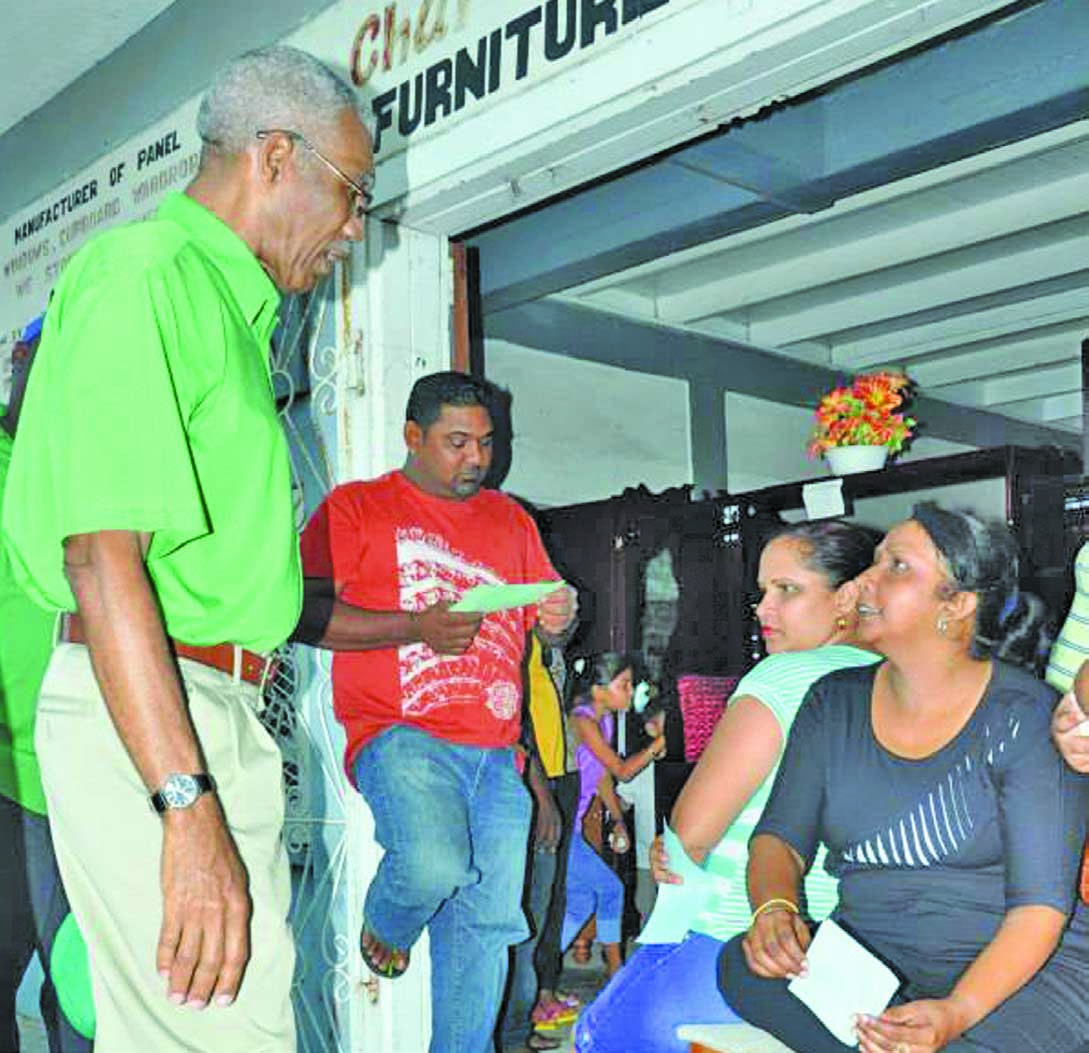 APNU Leader David Granger pays rapt attention to what is being said by a citizen at the party’s outreach in Berbice