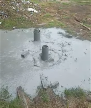“I know they were drilling for a well in a private capacity. Not for GWI or anything. And I heard a noise and when I came out, I saw the greyish slushy mud bubbling and it started to get bigger and bigger then started spilling up into the air. I quickly ran inside and lock up my door and left the area because I was afraid and I didn’t know was what,” she said.
