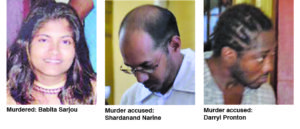 Narine, also called “Anand” of Lot 51 Seaforth Street, Campbellville, Georgetown; and Pronton, called “Yankee” of Lot 54 Broad Street, Charlestown, were charged in May last year with the brutal murder of Sarjou.