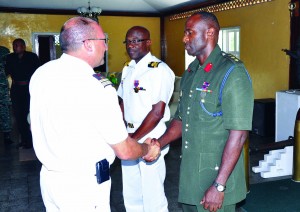 France’s outgoing non-resident military attaché, Lieutenant Colonel Daniel Kopecky, decorated the officers with the medals on behalf of his country’s defence minister, Gerard Longuet.