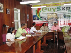 From R-L: Director, GTA, Indranauth Haralsingh and Vice President, Founder of the Guyana Amazon Tropical Birds Society, Andy Narine, flanked by GATBS Treasurer, Alain Vanveel and staff of the Tourism and Hospitality Association of Guyana (THAG), and Evergreen Adventure