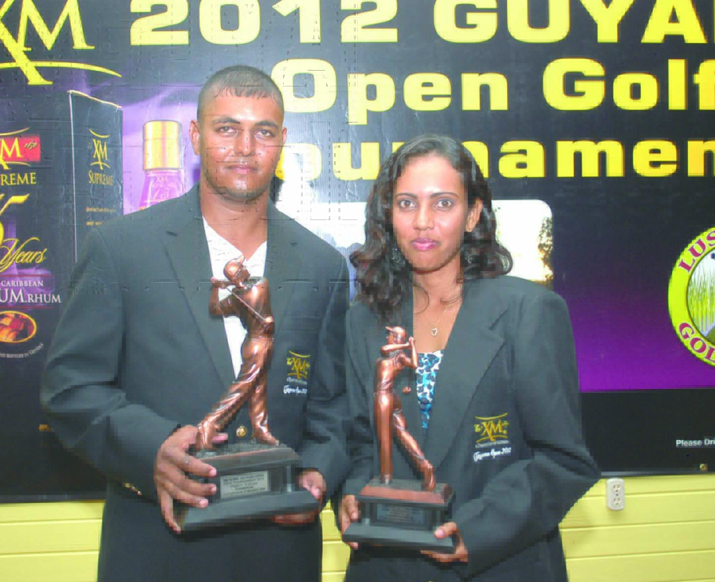 Avenash Persaud and Christine Sukhram pose with their championship trophies