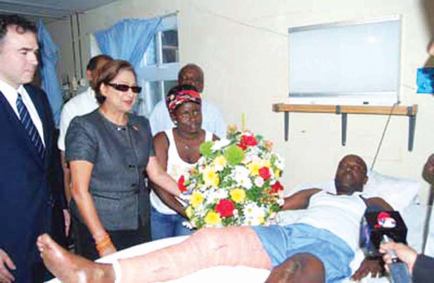 TT PM Kamla Persad-Bissessar and CAL Chairman George Nicholas had visited Noel Elliott while he was at the Georgetown Public Hospital following the plane crash (File Photo)