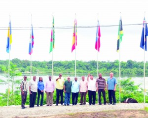 Caricom leaders and their representatives pose for a photo at the conclusion of their retreat at the BK Quarries resort in the Mazaruni