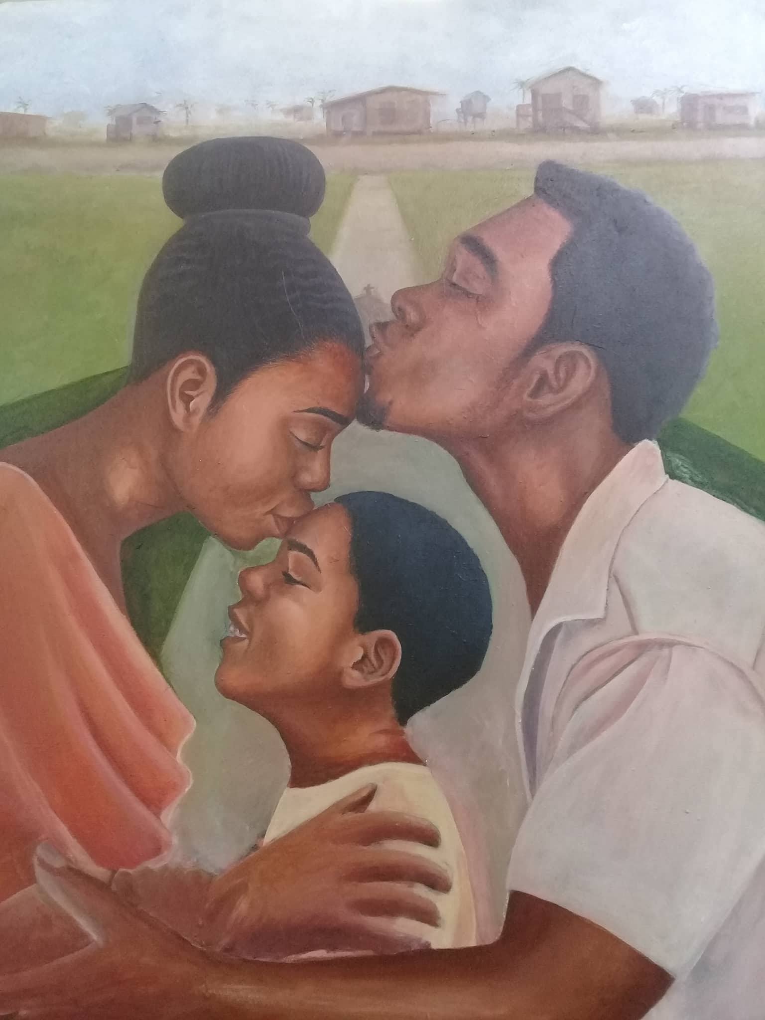 Through their art, Shimuel Jones and Michael Griffith capture the meaning of fatherhood, saying that fathers should not only be financial providers, but also nurturers. Shimuel Jones is a Guyanese artist noted for possessing immense skill in painting, drawing or sculpting. His thought-provoking piece “Father and Son” depicts a son embraced by his father. “What is most significant about this painting is the book that the child is holding. As a father, it is important to not only be a monetary provider, but someone who nurtures the mind of his…