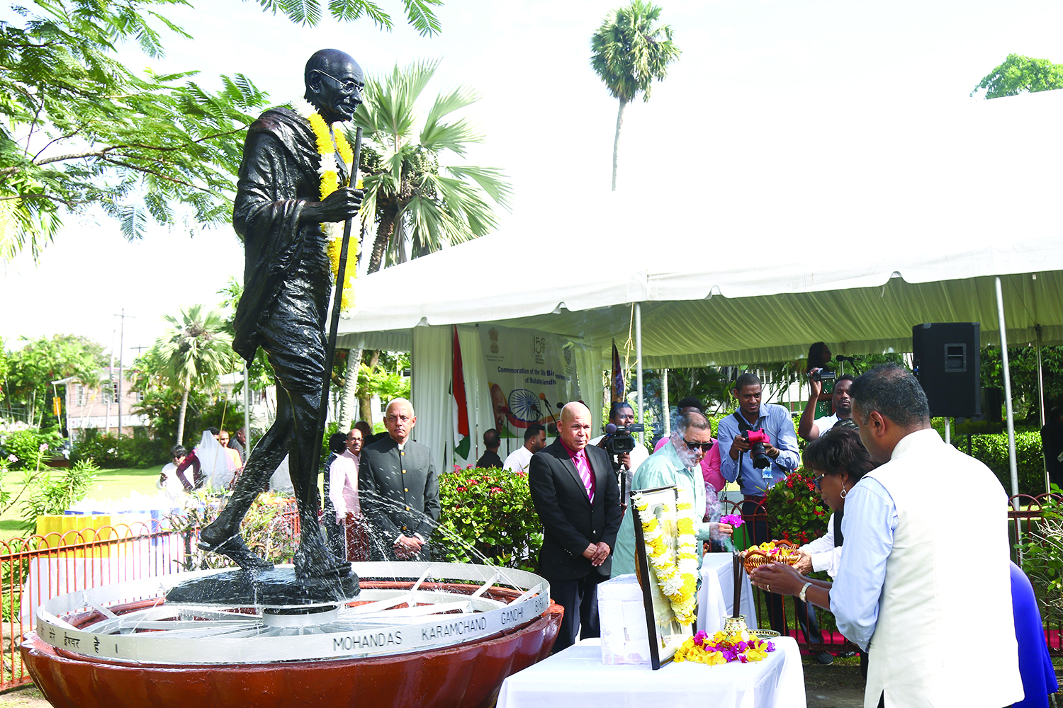Tributes poured in at the Promenade Gardens on Wednesday morning, as Guyanese came out in their numbers in remembrance of Mahatma Gandhi on his 150th birth anniversary. Organised by the Indian High Commission in Guyana, the event was well attended by former presidents, cabinet members and representatives from the diplomatic corp. Born Mohandas Karamchand Gandhi, he was an Indian lawyer and political leader who embarked on a mission of nonviolent resistance to lead the successful campaign for India’s independence from British Rule. This in turn, inspired movements for civil rights…