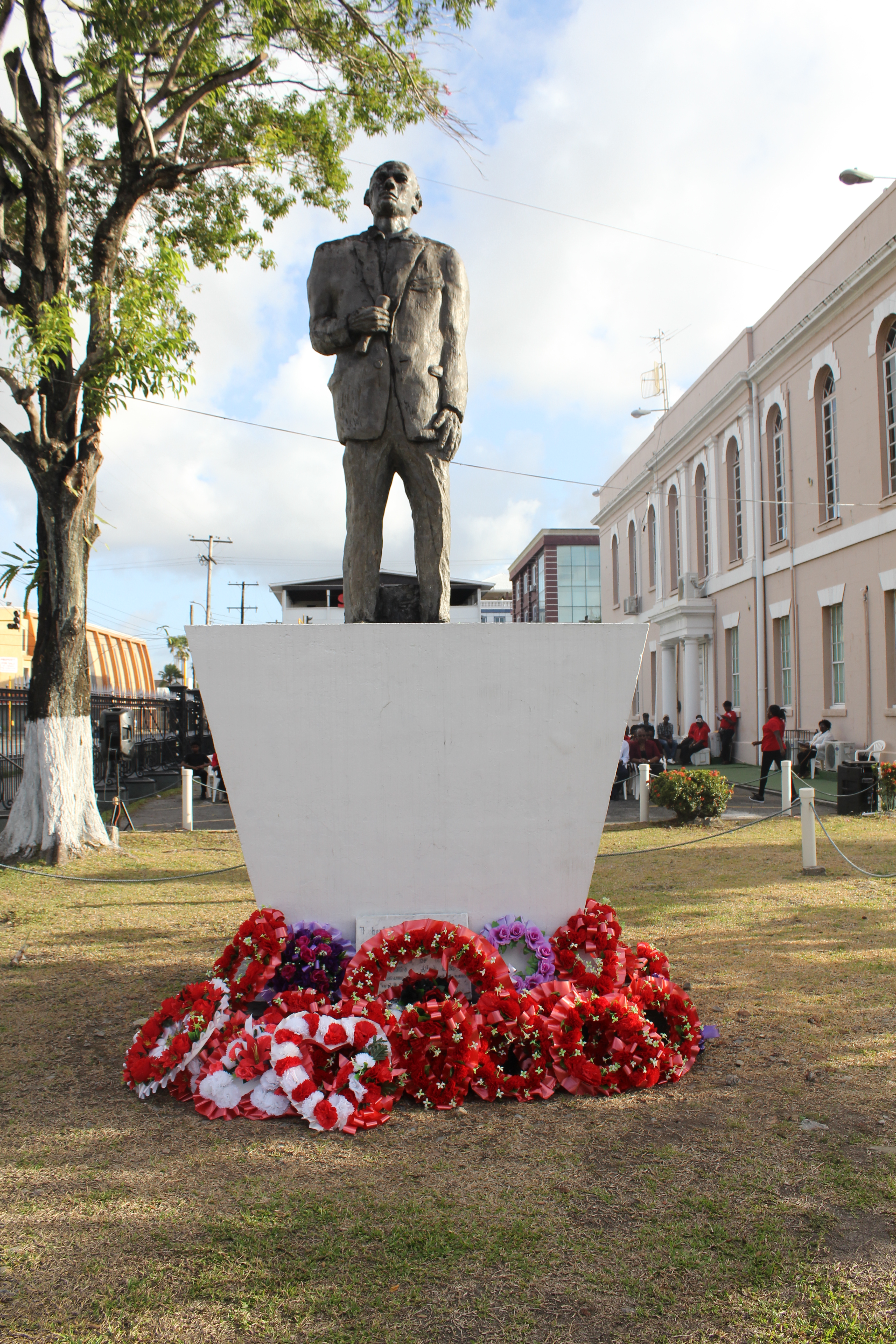 Hubert Nathaniel Critchlow is referred to as the father of Trade Unionism in Guyana. His monument stands tall in the compound of the Public Buildings and was unveiled by the then Premier of British Guiana Dr. Cheddi Jagan on 2 December 1964. As a 21 year old dock worker Critchlow founded the British Guiana Labour Union which fought successfully for the rights of dock workers in Georgetown. (Shaconeil Burnette photo)