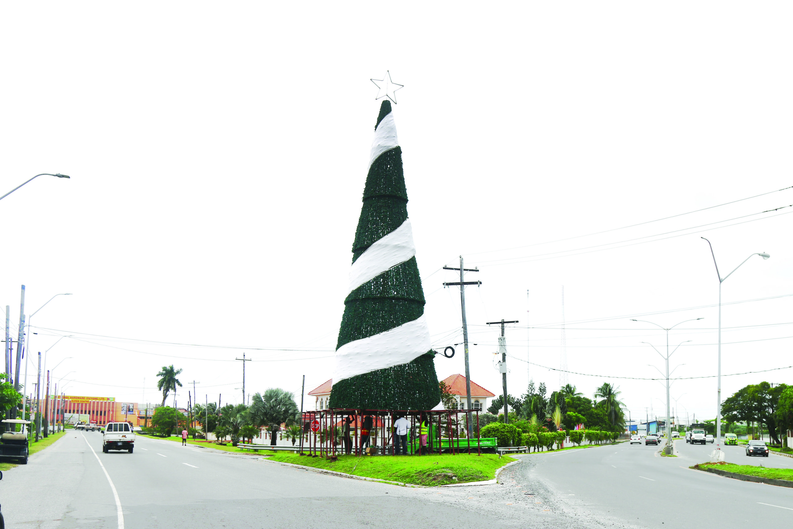Work begins on decorating the giant Christmas tree at Rahaman’s Park, Houston, Georgetown – one of the highlights of the festive season in Guyana