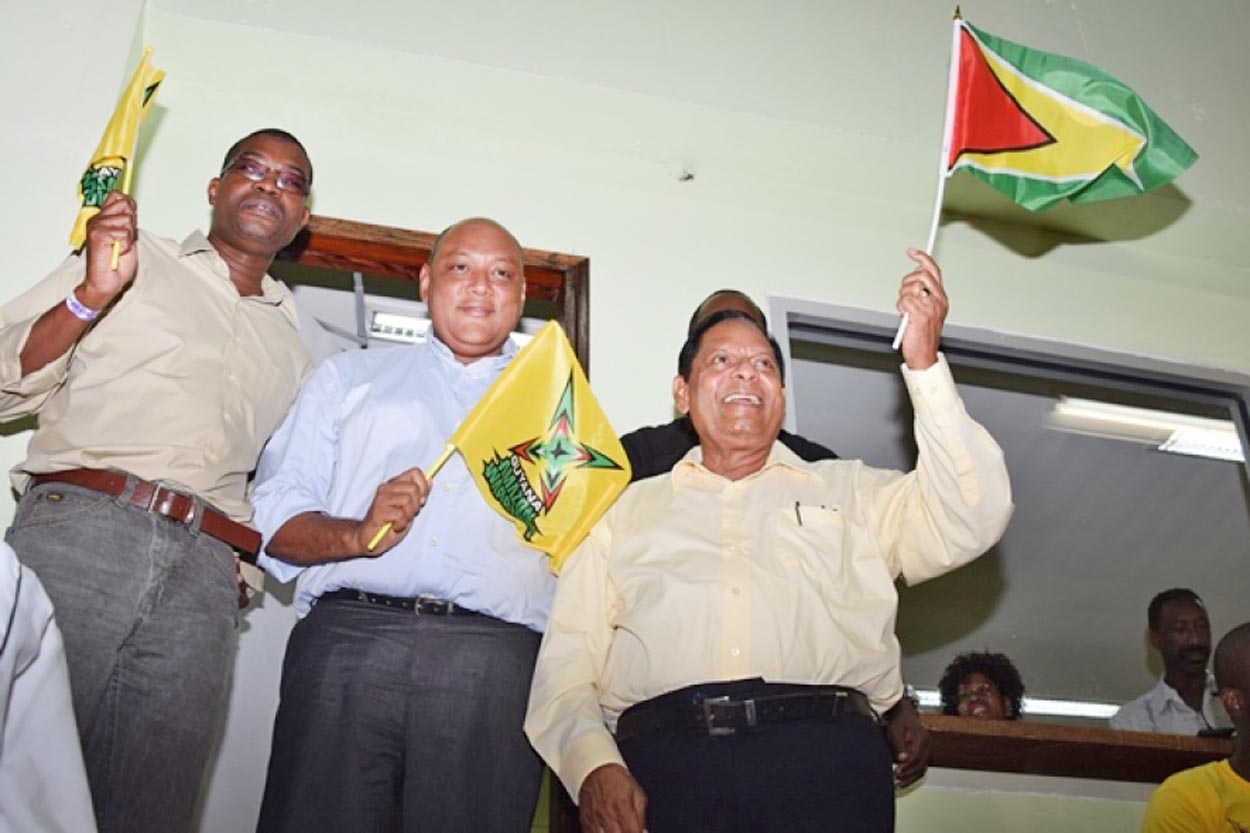 Prime Minister and President (acting) Moses Nagamootoo and Minister of Governance, Minister of Foreign Affairs (acting) Raphael Trotman and Minister of Public Infrastructure David Patterson showing their support for the team