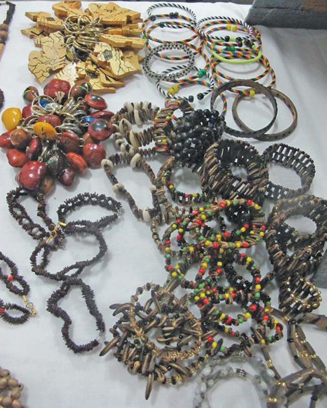 “Buck beads grow wild here but in other countries they are sold at expensive rates. I must say my husband has a lot of patience with this because every tiny seed has to be pierced so that we can get our designs. The challenge we face is that in Guyana we are a more gold oriented people. We have appreciation for craft but not local craft. People think these coming from abroad are better than ours but we have the best in Guyana.” Jah Works is located at the side entrance of Rayon House of Fashion on Robb Street, and has a wide array of beaded accessories.