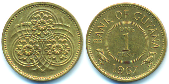 Guyana, on attaining independence in 1966, withdrew from the Eastern Caribbean currency board and began to issue its own coins (one cent, five cents, ten cents, twenty-five cents, fifty cents) and currency notes with values of one dollar, five dollars, ten dollars and twenty dollars.