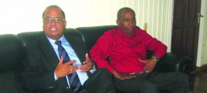 Tourism, Industry and Commerce Minister Manniram Prashad and Delta Airlines Sales Manager Junior Horatio at a press conference