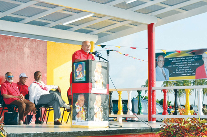 According to a Government Information Agency (GINA) release, addressing the gathering on a platform obliquely opposite the late president’s crematorium site, the head of state said the same wave of criticisms Cheddi Jagan faced for the establishment of the University of Guyana, the Bank of Guyana, Black Bush Polder and the conversion of the National Park is being manifested today with regards to the government’s One Laptop Per Family programme, the Amaila Falls Hydropower Project, the Cheddi Jagan Airport expansion and ethanol projects among others.