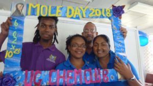 Every year, the University of Guyana’s Chemistry Club hosts a series of activities to commemorate the day. The club was founded in 2014. It consists of an executive body: the president, vice president, treasurer, secretary and two representatives from each year and the other members. It was formed with specific objectives, which include providing opportunities for sharing and promoting interest in the chemical sciences as well as providing students with opportunities to develop communication skills.