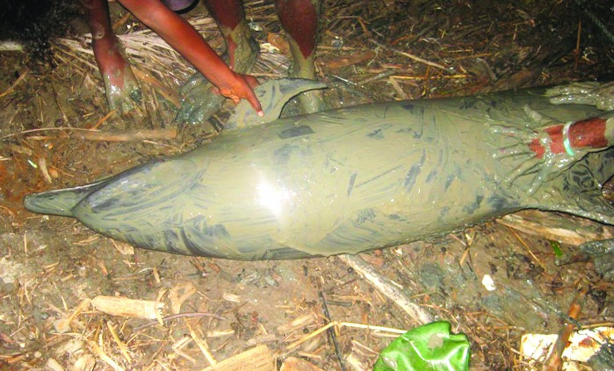 A six-foot dolphin was on Tuesday night spotted at the Better Success Foreshore at approximately 20:00h. The dolphin was brought to the shore by fishermen who placed it on display.