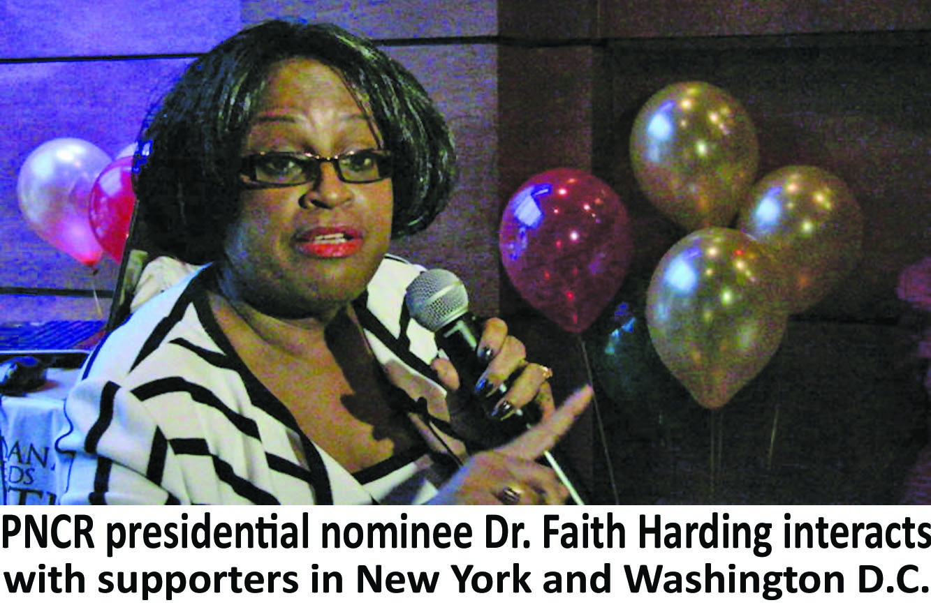 Dr. Harding met with groups in Washington D.C. and New York, which she said received her with warmth and enthusiasm. Guyanese from several states, including Georgia, Miami and South and North Carolina, were also at the two events.