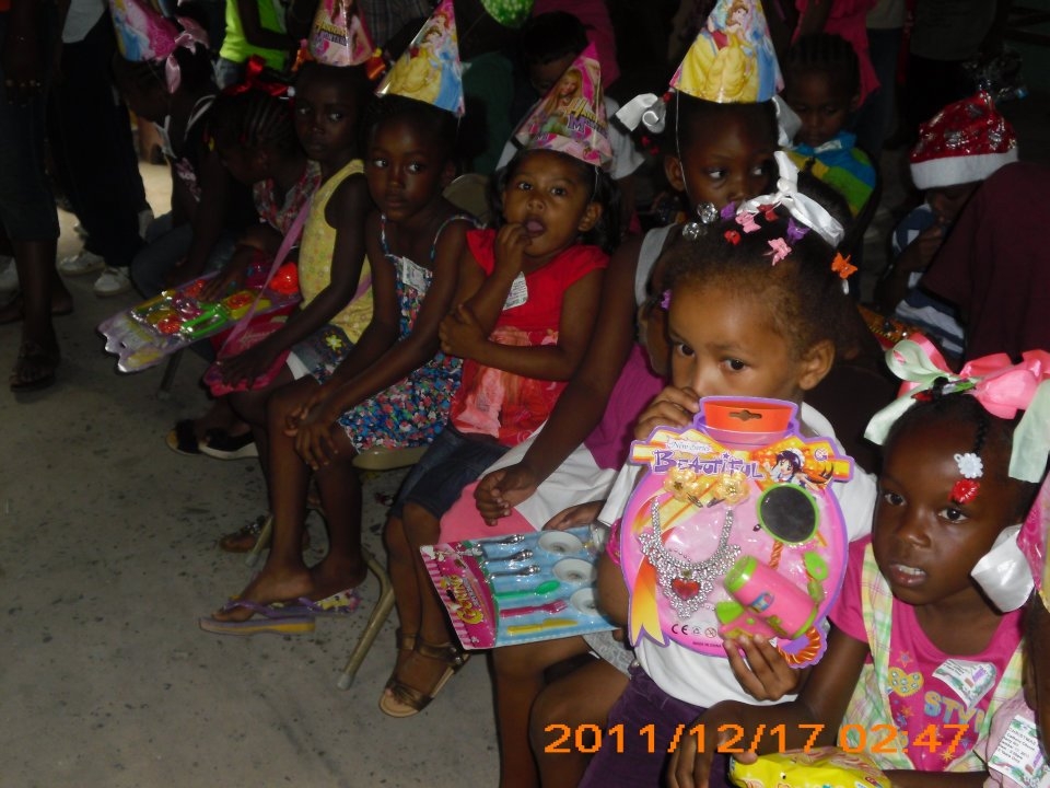 At the parties, they are able to give out hundreds of food hampers and students receive school supplies and toys.