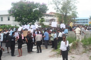 Government Ministers in solidarity with workers as they protest the AFC’s proposed budget cuts, that if materialized, would see many jobless