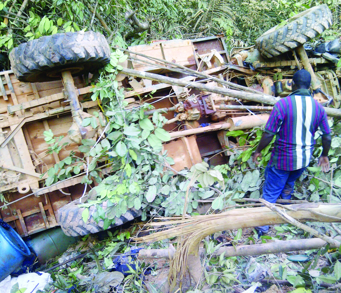According to information received, the Bedford truck bearing registration number GNN 8941 was climbing a hill at 113 Miles on the Barama Road, when it started to experience mechanical problems, causing it to topple some 65 feet downhill.