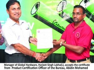 Global Hardware Incorporated on Friday became the fifth company to be certified by the Product Certification Scheme of the Guyana National Bureau of Standards for its polypropylene pipes. At a short ceremony at the company’s head office, the Bureau of Standards presented a certificate as proof of the company’s compliance with national standards.