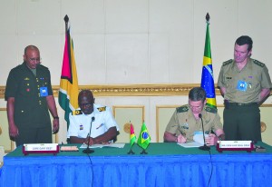 The Guyana Defence Force and the Brazilian Army on Thursday signed a protocol that will see cooperation in areas of training, doctrine and operations, intelligence, logistics, engineering, and international affairs.