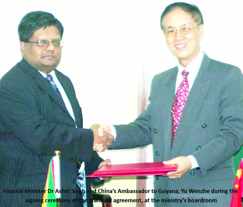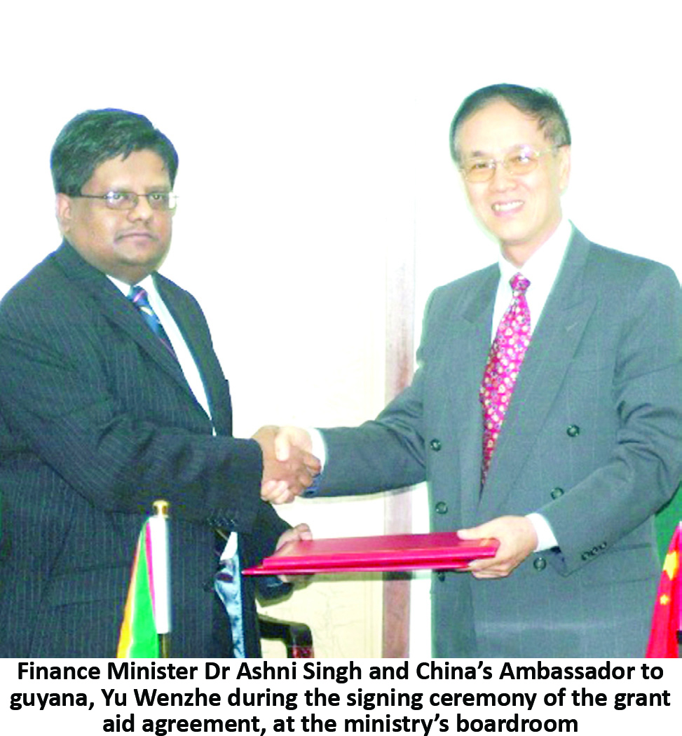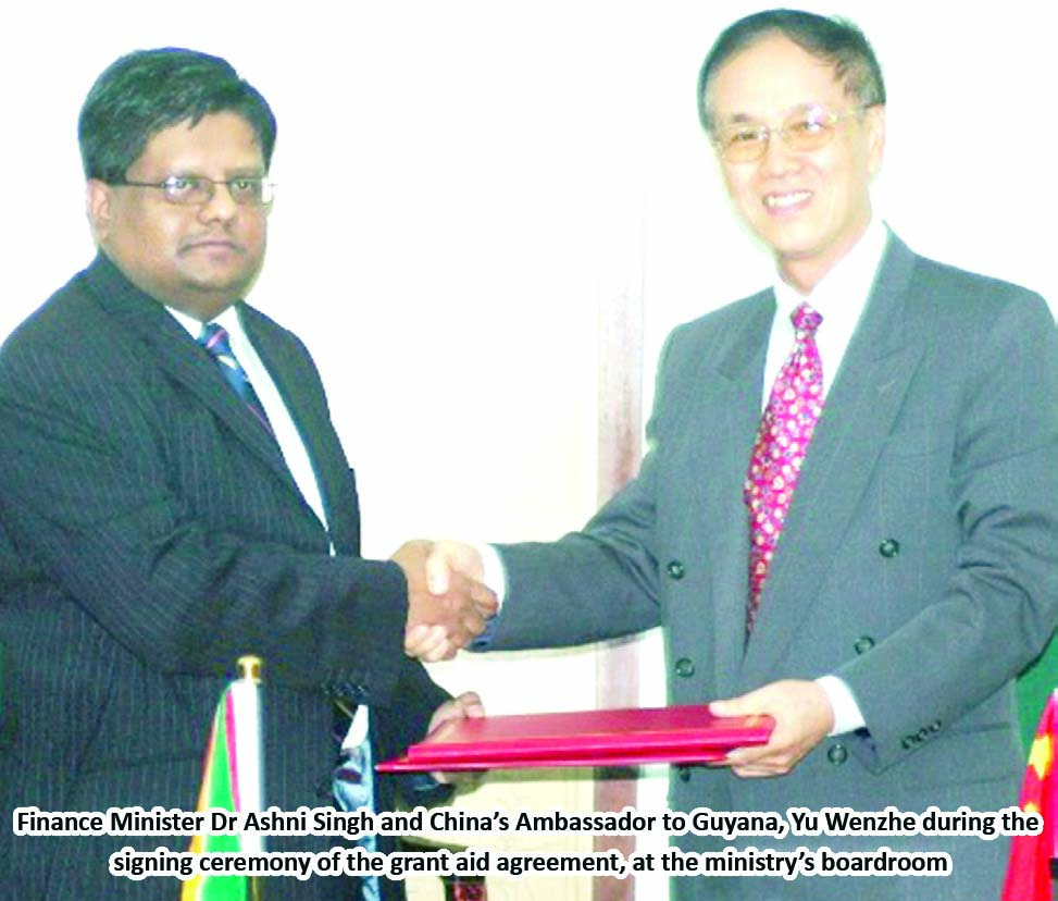 Guyana and China have signed a grant aid agreement worth 50 million renminbi (between US$7.5 million and US$8 million) that will see further development of the social sector, particularly as it relates to training and capacity building.