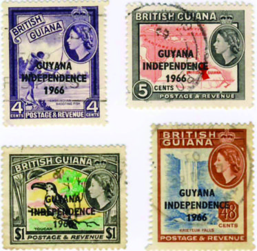 Soon after the introduction of postage stamps in 1840, countries began using them to portray details about the country in particular, and the move to Independence was one event that was particularly highlighted on many a country’s postage stamps. Guyana issued a new set of stamps to commemorate its Independence on May 26, 1966; new stamps were also required because the country’s name was being changed.