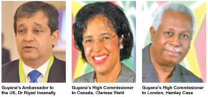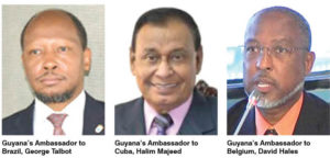 The diplomats included Guyana’s Ambassador to Brazil, George Talbot, Ambassador to Belgium, David Hales; Ambassador to Cuba, Halim Majeed; Ambassador to Kuwait, Dr Shamir Ally; Ambassador to Suriname, Keith George; Ambassador/Permanent Representative to United Nations, Michael Ten-Pow; Ambassador/Permanent Representative to Switzerland, John Ronald Deep Ford; Venezuelan Ambassador Cheryl Miles, and Ambassador to the United States of America, Dr Riyad Insanally. Meanwhile, the High Commissioners named were Clarissa Riehl (Canada); Hamley Case (London); Dr Kenneth Hunte (South Africa); Bishwaishwar Ramsaroop (Trinidad & Tobago).