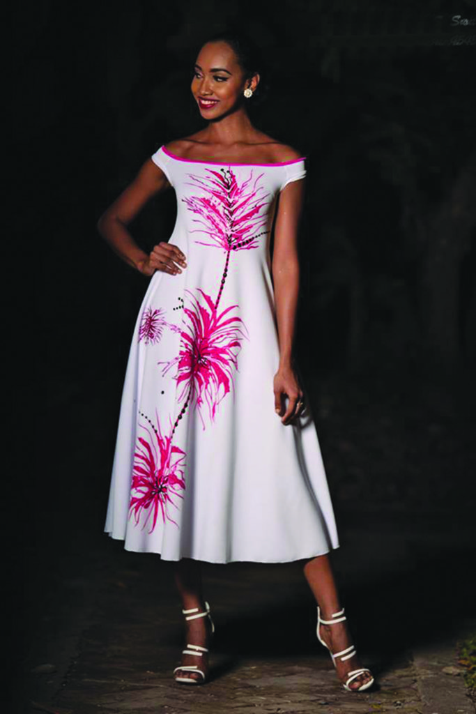 Local designer extraordinaire, Marcie De Santos recently launched her latest hand painted collection. The pieces are stunning and available in store at The Fashion Atelier located at 159 Waterloo Street, Georgetown. Here are a few pieces from the collection. (Photos by Marcie De Santos)