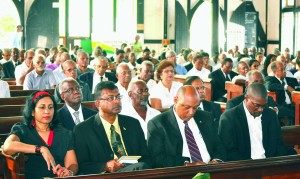 Leaders of the AFC including Raphael Trotman and Khemraj Ramjattan along with relatives and friends of the late Sheila Holder at a memorial service held in her honour at the St George’s Cathedral on December 20 in Georgetown