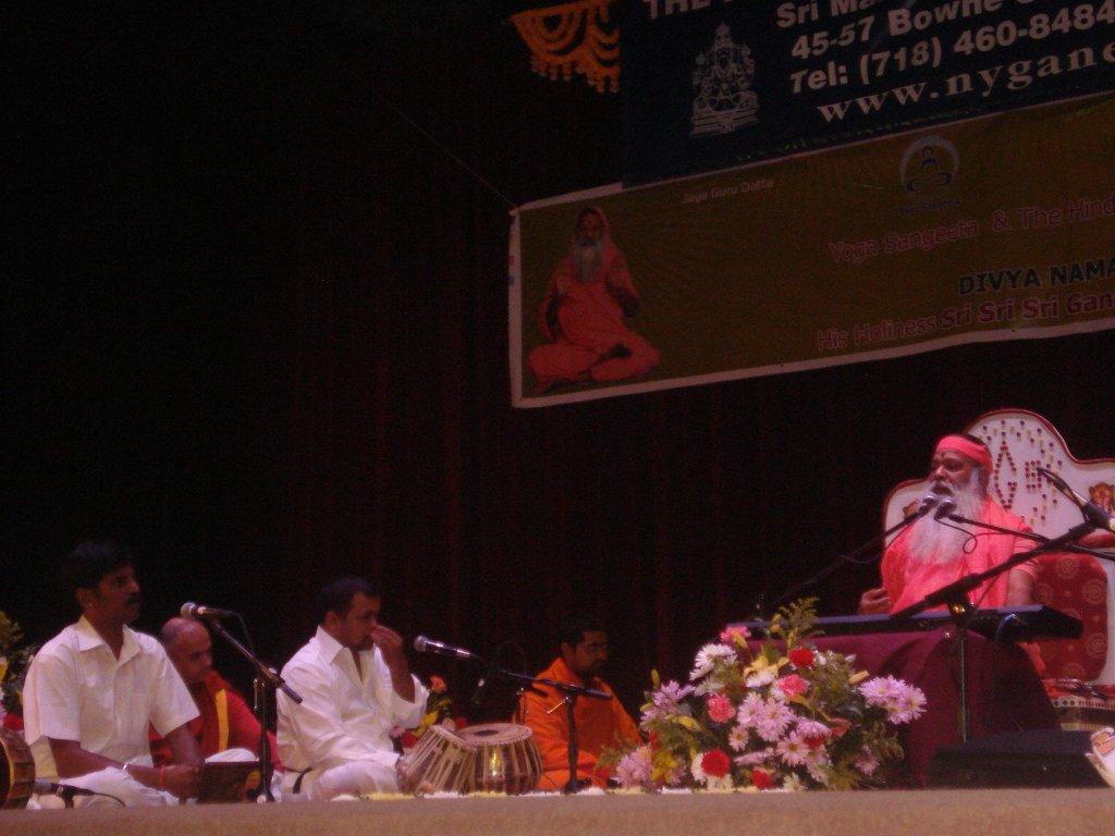 Indo-Guyanese and other Indo-Caribbeans are keen followers of Swami Ganapathi, based in Mysore, India, and they turned out in large numbers for the spiritual concert held last Sunday afternoon at the Flushing Temple auditorium where His Holiness Sri Ganapati Sachchidananda Swamiji performed continuously for two hours.