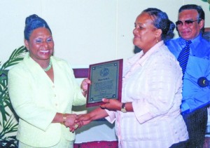Chairman Yvonne Hinds hands out a Plaque of Appreciation at an Annual Luncheon