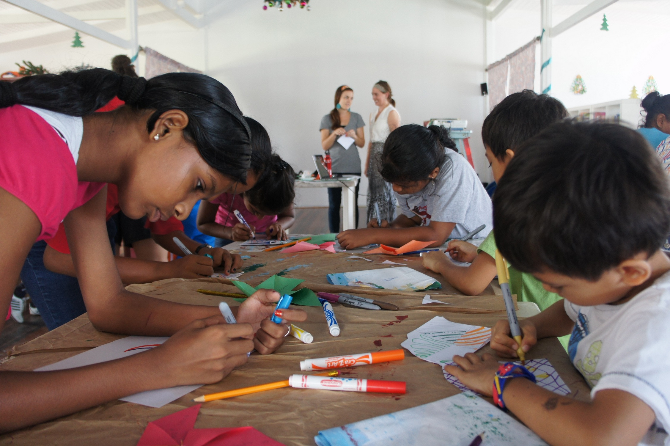 The art camp is one of the library’s most ambitious projects, reaching more children for a longer period than anything they have done so far. During the children’s Christmas school holiday, each day the library features activities such as snowflake Christmas decorations, greetings cards, paper windmills and colour wheel flags.