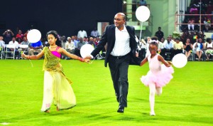 With children during the Appreciation Day Ceremony held September 2011 at the Guyana National Stadium at Providence