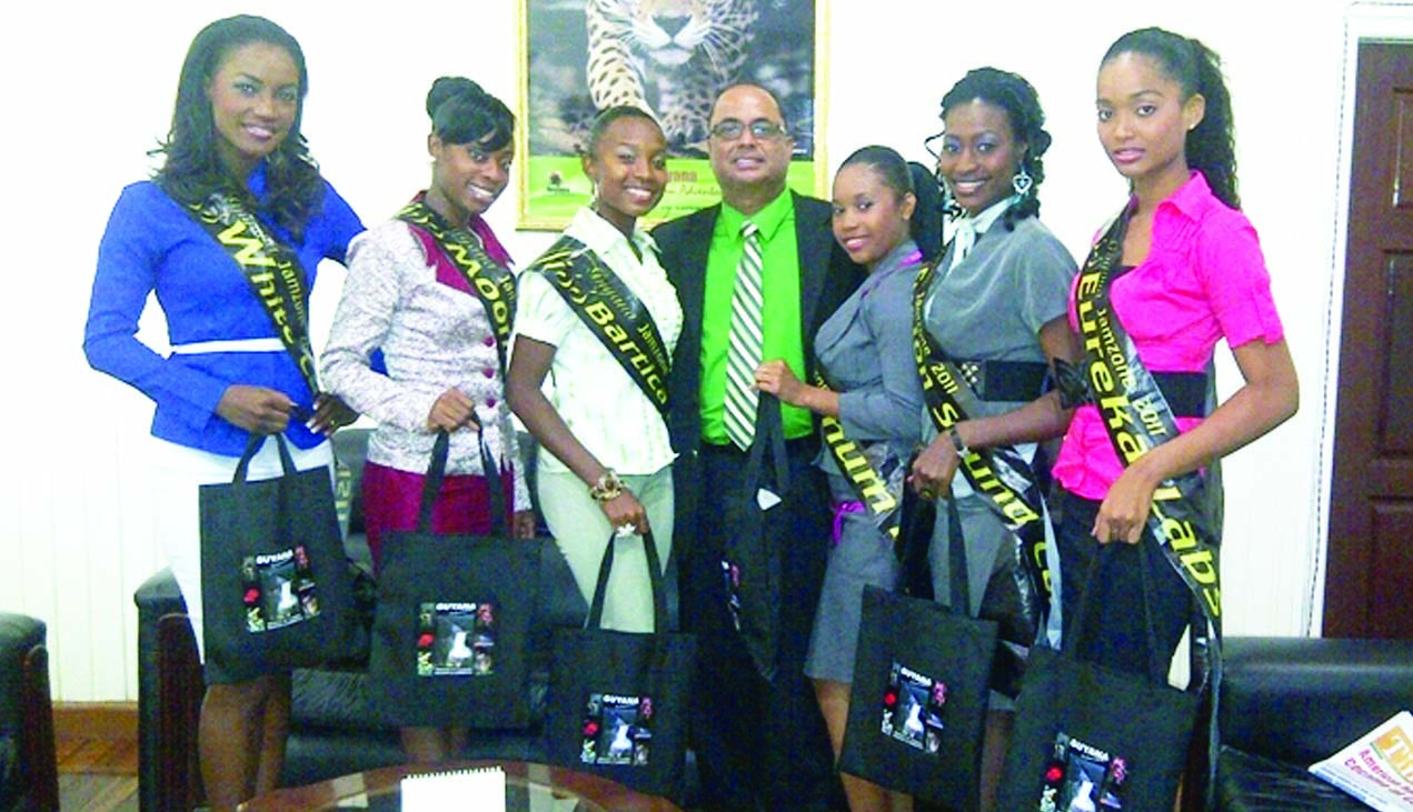 The six young ladies who will be competing for the Miss Guyana Jamzone crown met with Tourism, Industry and Commerce Minister Manniram Prashad on Tuesday, May 24.