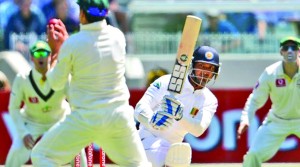 Sangakkara was wearing the gloves due to a hairline fracture Prasanna Jayawardene suffered while batting, and although he dropped that chance he was part of one dismissal, whipping the bails off at the striker’s end to run Phillip Hughes out for 10. Ed Cowan had worked the ball to the leg side and called Hughes through for a single, but the non- striker’s hesitation led to his demise; Dilshan mis- fielded and Hughes could comfortably have made the run had he set off immediately.