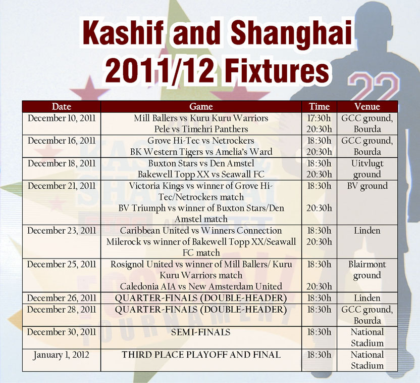 Twenty (20) teams will throw down the gauntlet from Saturday when action in the 22nd Kashif and Shanghai Football Tournament gets into gear at the world famous Georgetown Cricket Club (GCC) ground, Bourda.